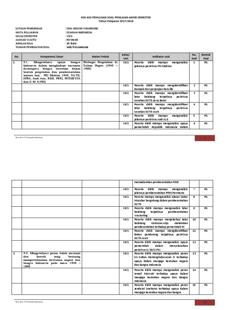 3.1 menganalisis keterkaitan konsep manusia hidup dalam ruang dan. X iis / ganjil : Kisi kisi soal usbn sejarah indonesia donisaurus. Menentukan ranah kko yang akan digunakan dalam penulisan indikator soal. Ganda dan 10 (sepuluh) soal essay.